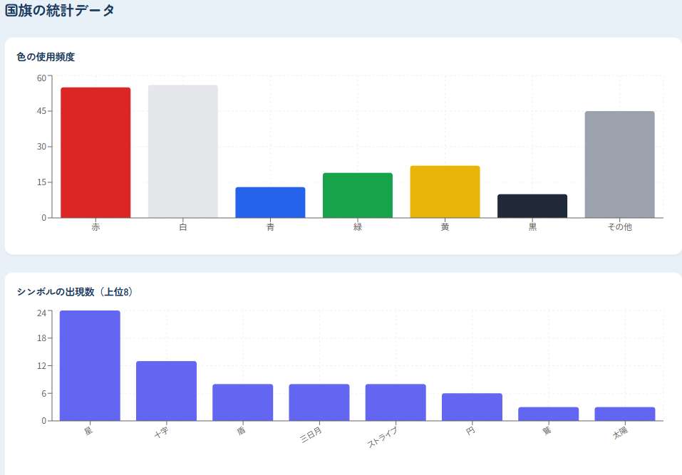 三色旗、北欧十字、汎アフリカ色など9つのファミリーに分類された世界の国旗。色やシンボルの統計ダッシュボードで国旗のつながりを発見するコンテンツの紹介。
